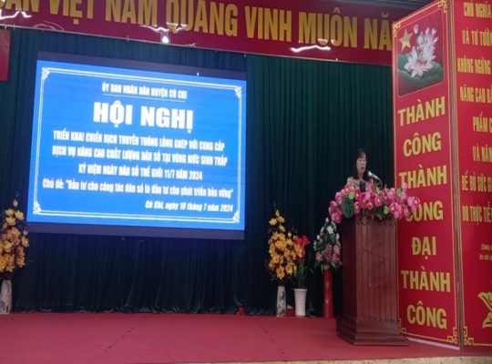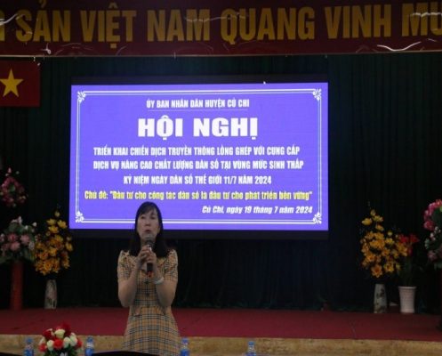Sáng ngày 19/7/2024, Ủy ban nhân dân huyện Củ Chi tổ chức Hội nghị triển khai Chiến dịch truyền thông lồng ghép với cung cấp dịch vụ nâng cao chất lượng Dân số tại vùng mức sinh thấp và hưởng ứng kỷ niệm ngày Dân số Thế giới 11/7 với chủ đề “Đầu tư cho công tác dân số là đầu tư cho phát triển bền vững”.