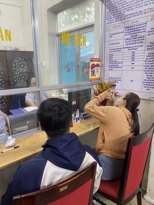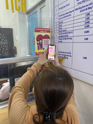 Hình ảnh người dân quét mã tại bộ phận 1 cửa của phường
