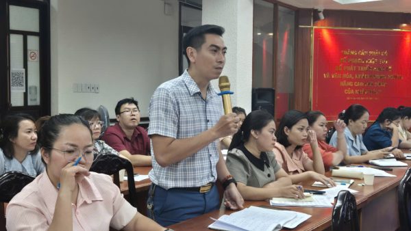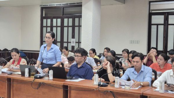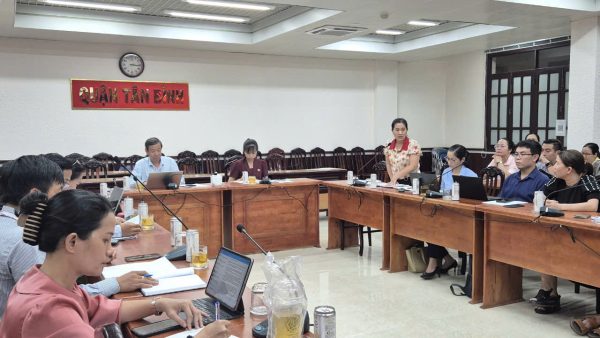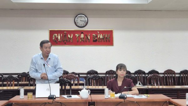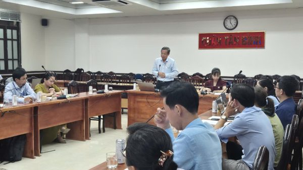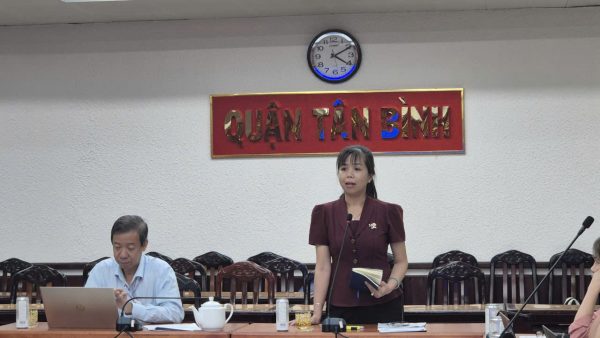 Bà Trần Thị Thủy Cúc – Phó Giám đốc Trung tâm Y tế quận báo cáo tình hình triển khai thực hiện, những khó khăn và đề xuất kiến nghị trong quá trình thực hiện công tác khám sức khỏe người cao tuổi; công tác phòng, chống dịch bệnh; tiêm chủng mở rộng trên địa bàn quận Tân Bình.