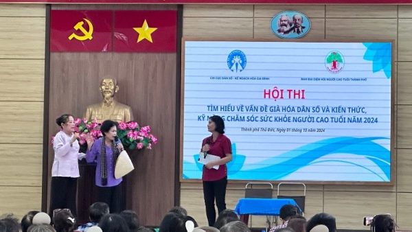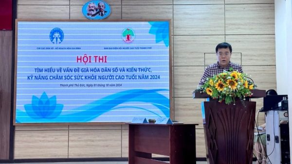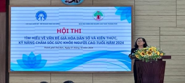 Nhằm thiết thực các hoạt động chào mừng kỷ niệm ngày Quốc tế Người cao tuổi 1/10, ngày 01 tháng 10 Chi cục Dân số – KHHGĐ Thành phố phối hợp với Ban Đại diện Hội Người cao tuổi Thành phố Hồ Chí Minh, Ban Đại diện Hội Người cao tuổi và Phòng Y tế thành phố Thủ Đức tổ chức hội thi “Tìm hiểu về vấn đề già hóa dân số, kiến thức, kỹ năng chăm sóc sức khỏe người cao tuổi tại thành phố Hồ Chí Minh” năm 2024 với sự tham gia của 07 đội thi đến từ các câu lạc bộ Người cao tuổi giúp Người cao tuổi trên địa bàn Thành phố Thủ Đức.