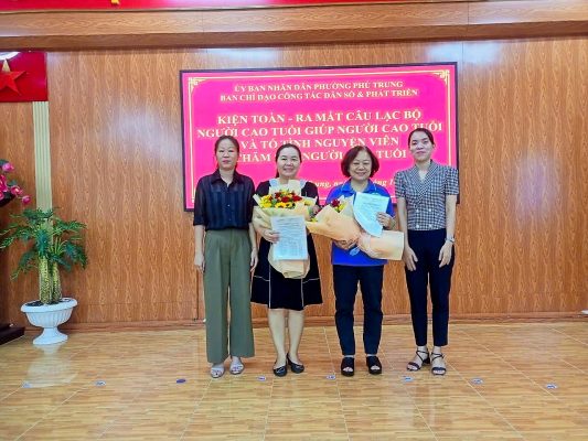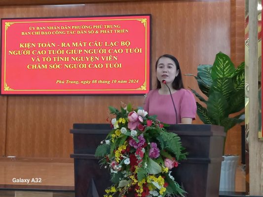 Vào lúc 08 giờ 30 phút ngày 08 tháng 10 năm 2024, Ủy ban nhân dân phường Phú Trung đã tổ chức Hội nghị ra mắt Câu lạc bộ “Người cao tuổi giúp người cao tuổi” và Tổ Tình nguyện viên “Chăm sóc người cao tuổi”. Đến tham dự Hội nghị có Bà Trần Thị Ngọc Yến – Trưởng phòng Dân số – Kế hoạch hóa gia đình, Chi cục Dân số – Kế hoạch hóa gia đình thành phố; Bà Lê Hồ Ngọc Dung – Phó Bí thư Đảng ủy ; Bà Nguyễn Thị Ngọc Tuyết – Phó Chủ tịch UBND; đại diện phòng Y tế cùng với hơn 50 người là thành viên Ban chỉ đạo công tác Dân số và Phát triển, thành viên câu lạc bộ và Tổ tình nguyện viên phường.