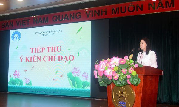 Bà Nguyễn Thị Hằng – Trưởng Phòng Y tế – Phó Trưởng Ban Dân số – Phát triển Quận 6 lên tiếp thu ý kiến chỉ đạo.