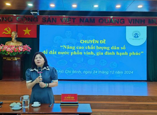 Bà Ngô Thị Thanh Thảo – Phó Trưởng phòng Truyền thông – Giáo dục, Chi cục Dân số – Kế hoạch hóa gia đình TPHCM truyền thông tại hội nghị