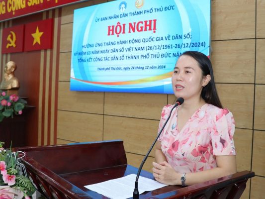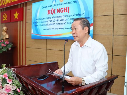 Tại Hội nghị Ông Nguyễn Văn Khuôn – Trưởng phòng Y tế thành phố Thủ Đức thông qua ý nghĩa Ngày Dân số Việt Nam; báo cáo kết quả hoạt động công tác Dân số tại thành phố Thủ Đức năm 2024 và phương hướng thực hiện chỉ tiêu nhiệm vụ của công tác dân số trong những năm tiếp theo; tất cả vì mục tiêu nỗ lực giải quyết tình trạng mức sinh thấp; kiểm soát mất cân bằng giới tính khi sinh; tận dụng hiệu quả cơ cấu dân số vàng; thích ứng với già hóa dân số; phân bố dân số hợp lý; nâng cao chất lượng dân số nhằm góp phần thực hiện thắng lợi nhiệm vụ phát triển kinh tế – xã hội của thành phố.