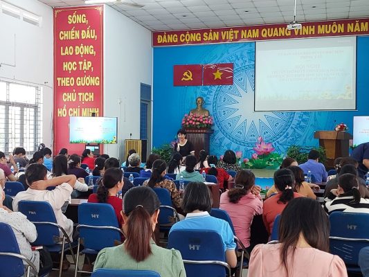 Báo cáo viên bà Võ Thị Thanh Thu – Trưởng Khoa chăm sóc sức khỏe sinh sản – Trung tâm Y tế huyện đã triển khai các văn bản về chính sách dân số mới cụ thể như: Nghị quyết số 40/2024/NQ-HĐND ngày 11 tháng 12 năm 2024 của Hội đồng nhân dân Thành phố Hồ Chí Minh, về việc quy định về chính sách khen thưởng, hỗ trợ đối với tập thể, cá nhân thực hiện tốt công tác dân số trên địa bàn Thành phố Hồ Chí Minh; Nghị quyết 37/2024/NQ-HĐND ngày 11/12/2024 về chính sách đặc thù hỗ trợ học phí cho học sinh trung học cơ sở công lập, ngoài công lập, học viên giáo dục thường xuyên trên địa bàn Thành phố Hồ Chí Minh năm 2024-2025; truyền thông về tầm quan trọng của việc khám sức khỏe sinh sản trước khi kết hôn, giúp nâng cao nhận thức và kỹ năng thực hành chăm sóc sức khỏe sinh sản, kế hoạch hóa gia đình, phòng tránh lây nhiễm bệnh qua đường tình dục, phát hiện sớm, điều trị kịp thời các bệnh di truyền…