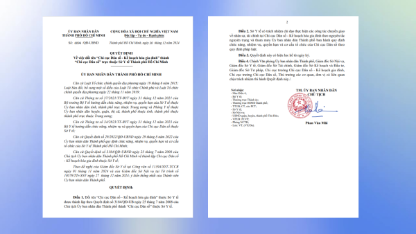 Ngày 30 tháng 12 năm 2024, Ủy ban nhân dân Thành phố đã ban hành Quyết định số 6094/QĐ-UBND về việc đổi tên “Chi cục Dân số – Kế hoạch hóa gia đình” thành “Chi cục Dân số” trực thuộc Sở Y tế Thành phố Hồ Chí Minh.