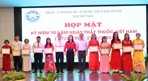 Ngày 27/02/2025, quận Bình Thạnh long trọng tổ chức Họp mặt kỷ niệm 70 năm Ngày Thầy thuốc Việt Nam. Dự họp mặt có các đồng chí: Đồng chí Phạm Chánh Trung – Chi cục trưởng Chi cục Dân số Thành phố; Đồng chí Trần Hoàng Thùy Trang – Phó Chi cục Trưởng Chi cục Dân số Thành phố; đồng chí Vũ Ngọc Tuất – Bí thư Quận ủy; Đồng chí Triệu Lệ Khánh – Phó Bí thư Thường trực Quận ủy; Đồng chí Phan Văn Định – Ủy viên Ban thường vụ Quận ủy, Trưởng Ban Tổ chức Quận ủy; Đồng chí Võ Hoàng Phú – Ủy viên Ban thường vụ Quận ủy, Trưởng ban Tuyên giáo; Đồng chí Nguyễn Thu Hương – Ủy viên Ban thường vụ Quận ủy, Chủ tịch Ủy ban Mặt trận Tổ quốc Việt Nam quận; Đồng chí Thái Thị Hồng Nga – Ủy viên Ban thường vụ Quận ủy, Phó Chủ tịch UBND quận và gần 200 đại biểu là các đồng chí đại diện các Ban xây dựng Đảng; lãnh đạo các đoàn thể và các phòng ban chuyên môn thuộc Ủy ban nhân dân quận; lãnh đạo UBND các phường; lãnh đạo Trung tâm Y tế, các bệnh viện, phòng khám cùng đội ngũ cán bộ, nhân viên ngành y tế, đội ngũ chuyên trách dân số, cộng tác viên dân số, cộng tác viên sức khỏe cộng đồng trên địa bàn quận.