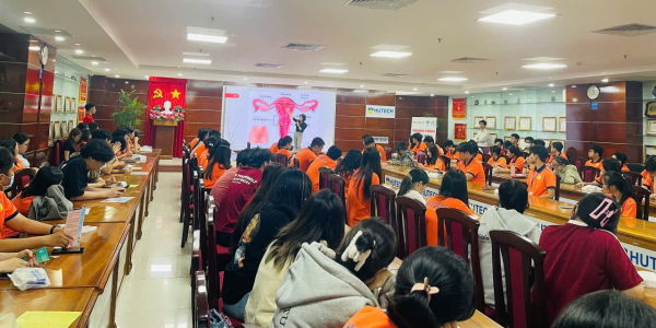 Ths. Trần Thị Hồng – Phó Trưởng phòng Khám sức khỏe sinh sản – Kế hoạch hóa gia đình thuộc Chi cục Dân số Thành phố truyền thông về Chăm sóc sức khỏe tiền hôn nhân tại Trường Đại học Hutech, Phường 25, quận Bình Thạnh