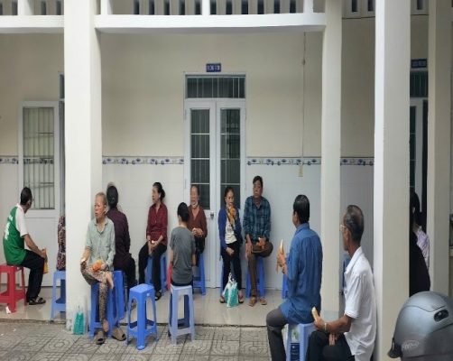 Hình 7-8: Người dân chờ khám theo hướng dẫn của nhân viên y tế.