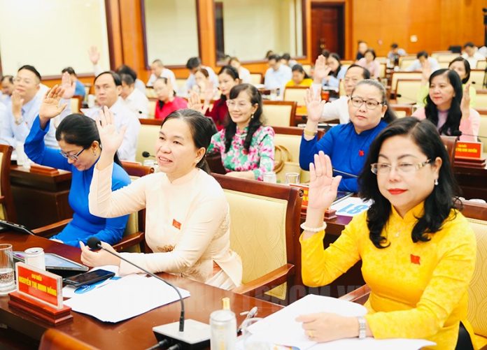 Các đại biểu đã biểu quyết thông qua Nghị quyết về thành lập, chia tách, sáp nhập, đổi tên khu phố, ấp trên địa bàn TPHCM