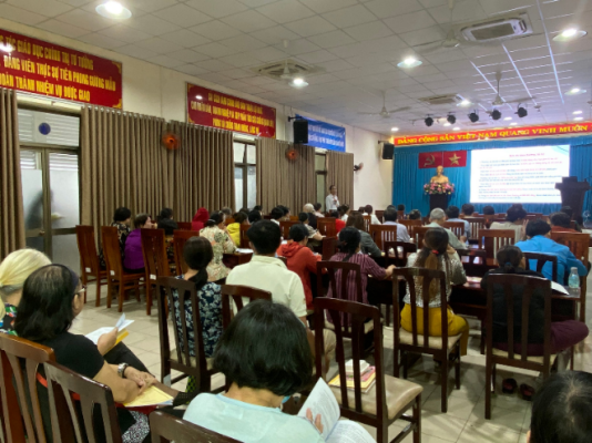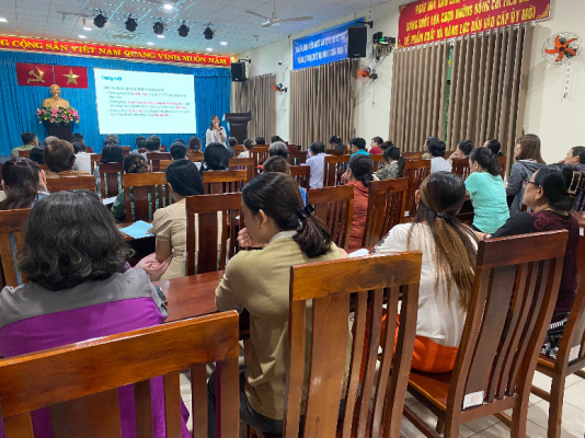 Từ ngày 16 tháng 8 đến ngày 17 tháng 8 năm 2023, tại Hội trường Uỷ ban nhân dân Phường 12 Quận 10, thực hiện kế hoạch tập huấn của Chi cục Dân số – Kế hoạch hóa gia đình Thành phố, Phòng Y tế Quận 10 phối hợp với Phòng Y tế Quận 11 đã tổ chức tập huấn trang bị kiến thức, kỹ năng cơ bản về nghiệp vụ công tác dân số và ghi chép ban đầu cho hơn 100 cộng tác viên dân số mới tham gia công tác trên địa bàn Quận 10 và 11.