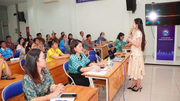 Chiều ngày 18/8/2023, Ban chỉ đạo công tác Dân số và Phát triển phường Nguyễn Thái Bình phối hợp với Trung tâm Học tập cộng đồng phường phối hợp tổ chức truyền thông cho đối tượng khó tiếp cận với chuyên đề “Bình đẳng giới” trên địa bàn phường năm 2023. Tham dự có Phó Chủ tịch UBND – Giám đốc Trung tâm Học tập cộng đồng phường, bà Trần Thanh Thủy và đại diện phòng Y tế Quận 1, cán bộ phụ trách công tác Dân số và hơn 70 người dân sinh sống, làm việc trên địa bàn phường.